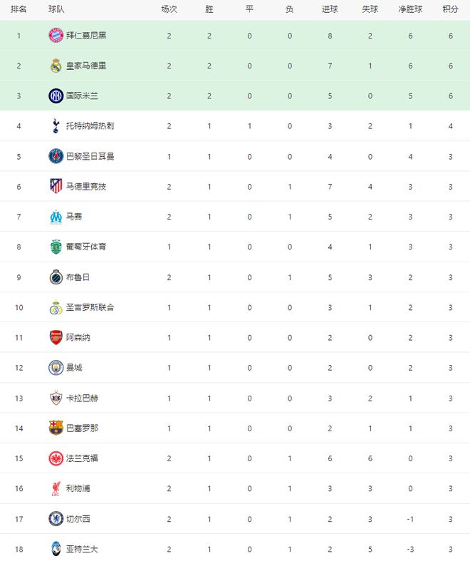 随着皇马5-0,拜仁5-1,欧冠最新积分榜:利物浦0-1输球跌至第16